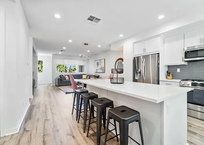 Located approximately a 5-minute stroll from the Valley Glen Community Park, Noho Modern Townhouse With Gorgeous Rooftop Los Angeles villa gives easy access to various tourist attractions in the area. Located in the vicinity of Saint Jane Frances Catholic Church, the Los Angeles holiday home provides Wi-Fi and free private parking.
